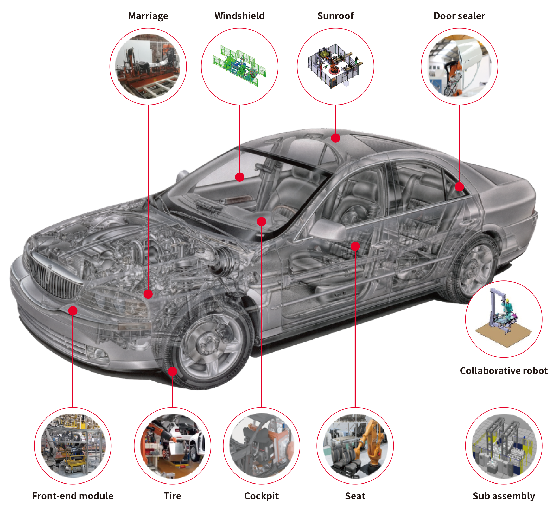 Easun Technology can provide large-scale system integration application services for the fields of assembly shop technologies and E-Mobility business. Its services include process analysis solutions, automation solutions, convey solutions, sealing assembly, gluing technology, marriage solutions, etc.