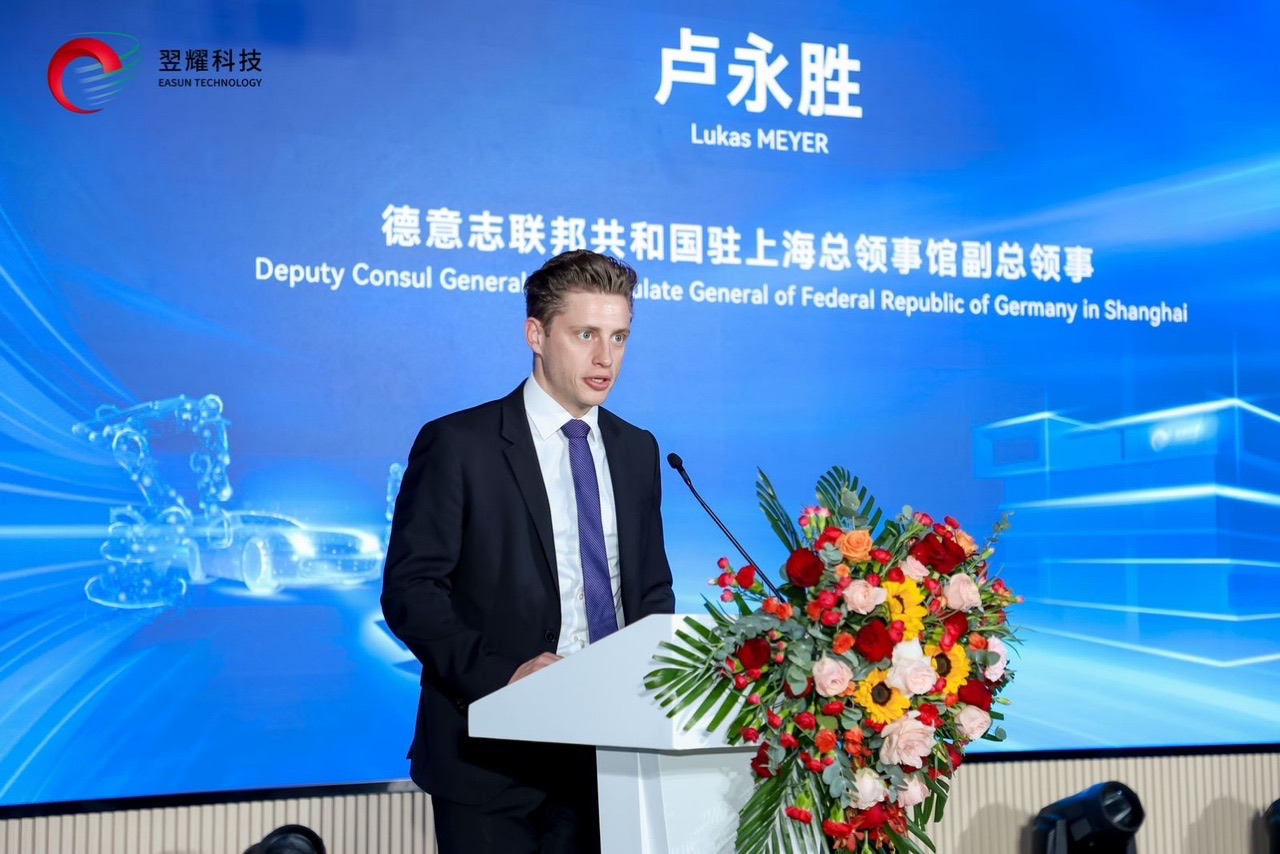 Over180 guests, including Cheng Peng,Party Committee Secretary, ShanghaiEconomic and InformationCommission, Lu Fangzhou,District CommitteeSecretary, Shanghai Jiading DistrictCommittee, Lukas MEYER, Deputy Consul General, the Consulate General of the Federal Republic of Germany in Shanghai, and Guo Guangchang, Chairman of Fosun International, attended the ceremony, witnessing this milestone for Easun Technology.
