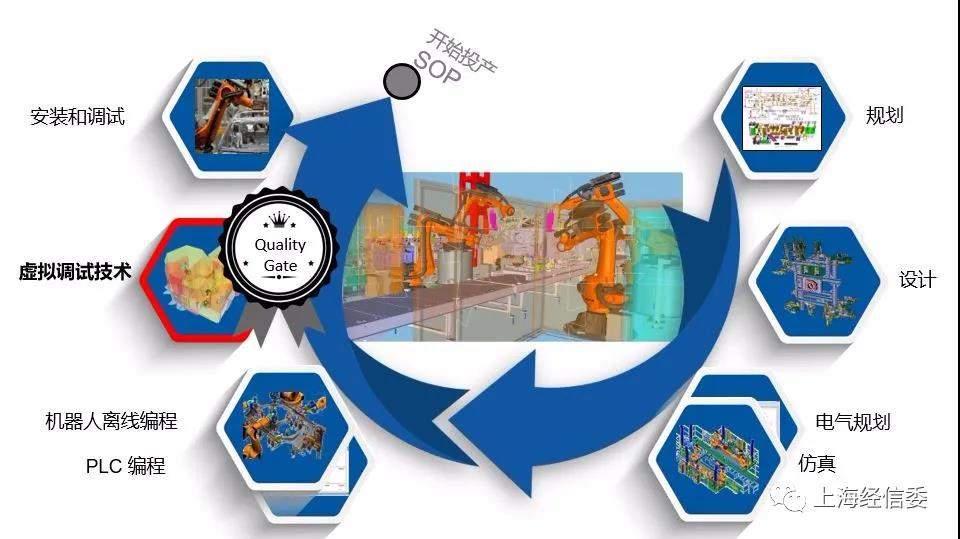 愛孚迪通過數(shù)字化調(diào)試平臺(tái),導(dǎo)入機(jī)械設(shè)計(jì)數(shù)據(jù)、3D模擬仿真數(shù)據(jù)、工藝設(shè)計(jì)數(shù)據(jù)、電氣硬件設(shè)計(jì)數(shù)據(jù)、PLC離線程序和機(jī)器人離線程序,構(gòu)建“虛擬-現(xiàn)實(shí)”一比一的還原,開展系統(tǒng)集成和驗(yàn)證。該項(xiàng)技術(shù)已成功應(yīng)用在大眾、奧迪、寶馬、北京奔馳、捷豹路虎、吉利和紅旗等主機(jī)廠項(xiàng)目中,通過虛擬調(diào)試技術(shù)的實(shí)施,有效地減少了從設(shè)計(jì)到實(shí)現(xiàn)的錯(cuò)誤率、縮短了現(xiàn)場(chǎng)調(diào)試時(shí)間、降低了項(xiàng)目成本、提高了項(xiàng)目質(zhì)量和工作效率。